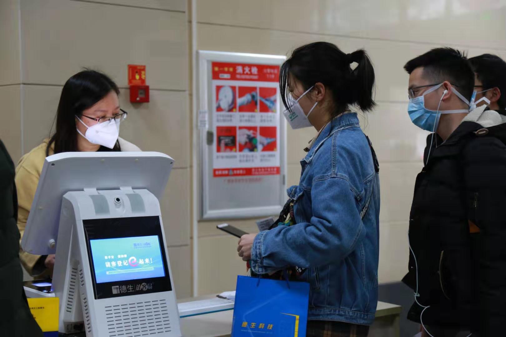 天河管委會聯(lián)合德生科技科學防治,精準施策, 率先以天河軟件園智慧園區(qū)F棟為試點,在樓宇入口登記處選用了德 生科技的雙屏式“訪客易”防疫版設備進行登記。