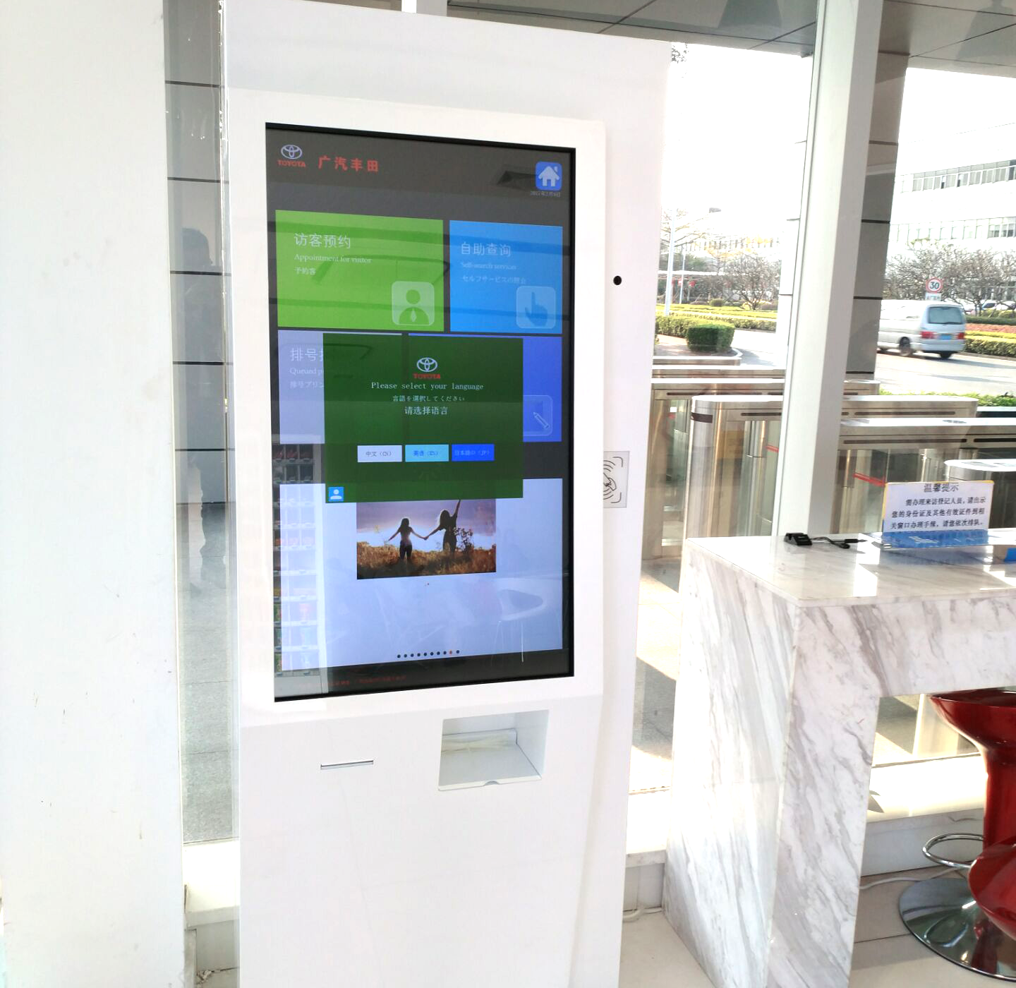 像銀行一樣的操作方式,訪(fǎng)客在自助機(jī)上領(lǐng)取號(hào)碼單,通過(guò)叫號(hào)的形式到前臺(tái)進(jìn)行臨時(shí)身份登記,經(jīng)被訪(fǎng)人語(yǔ)音確認(rèn)之后即可通行