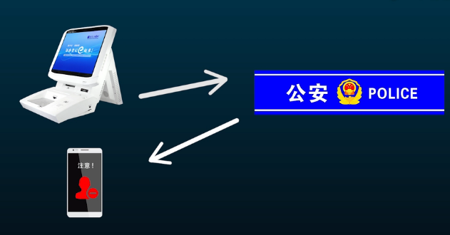 第2步 系統(tǒng)將該人員身份信息上傳至公安網(wǎng)高危人員數(shù)據(jù)庫進行比對,一旦發(fā)現(xiàn)危險人員發(fā)出預(yù)警短信。