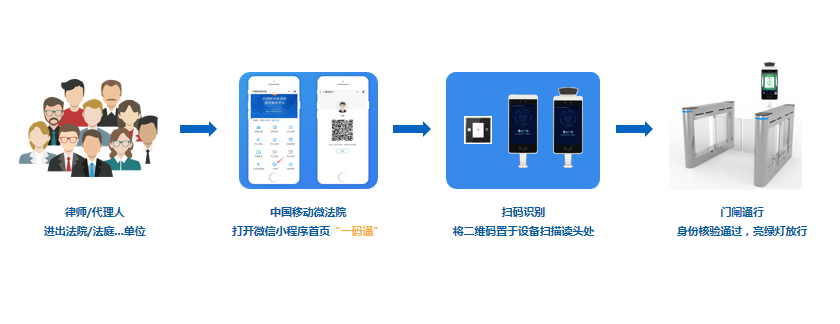 德生律師一碼通,律師通道,亮碼識(shí)別,快速核驗(yàn)通過(guò),進(jìn)入訴訟服務(wù)場(chǎng)所和審判法庭,提供更便捷、高效的訴訟服務(wù)!