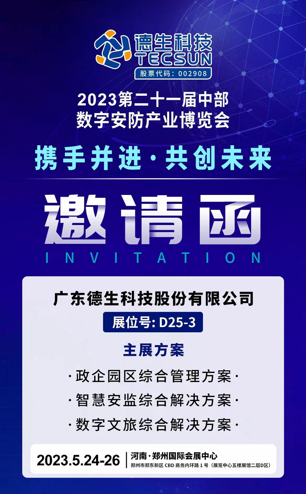 德生受邀參展2023第二十一屆中部數(shù)字安防產(chǎn)業(yè)博覽會