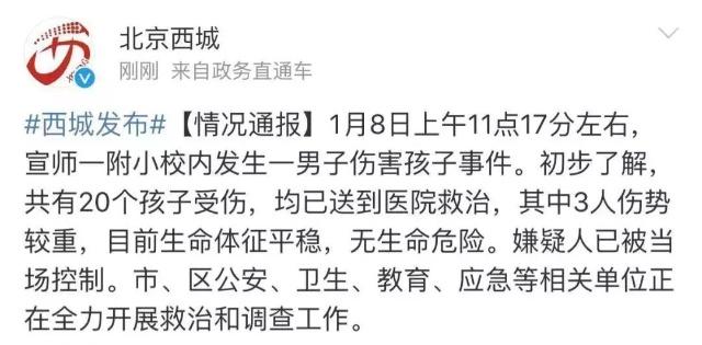 1月8日上午11點17分左右,在北京市西城區(qū)宣師一附小右安校區(qū)內發(fā)生一起男子傷害學生事件。