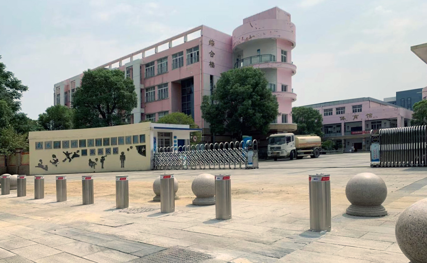 可升降的防沖撞住,攔截校外車輛,有效避免沖撞事故發(fā)生