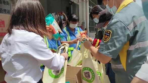 環(huán)衛(wèi)工人們接過愛心禮品,紛紛表示感謝,并表示繼續(xù)努力建設(shè)潔凈家園。