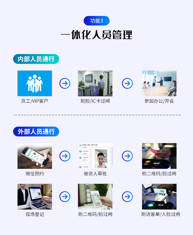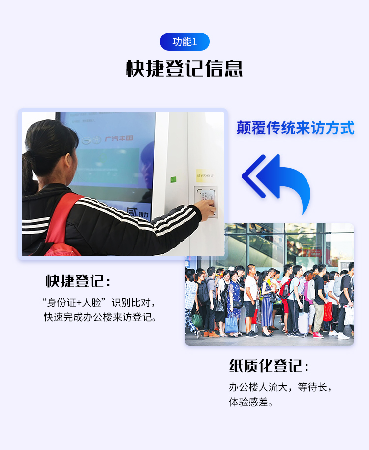 目前,大多單位開始實(shí)現(xiàn)刷臉進(jìn)出,出入口管理偏向智能化,德生訪客易致力于打造更智能的出入口管理系統(tǒng),推出人臉識(shí)別訪客機(jī),對(duì)內(nèi)外部人員進(jìn)出實(shí)行智能化統(tǒng)一管理,可實(shí)現(xiàn)各個(gè)單位內(nèi)外人員的智能刷臉進(jìn)出,提升用戶來訪體驗(yàn)。